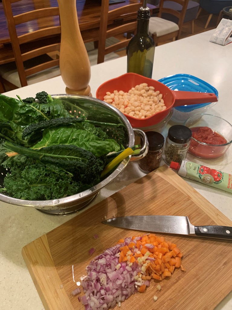 I started with the ribollita on p72, using cavalo nero from the garden and it was perfect. Ribollita is the ideal winter soup and this version was considerably more straightforward than that in At Home. This is currently my ribollita preferita.