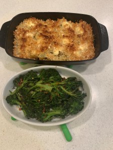 We absolutely loved the lamb chops with garlic, thyme and capers on p184. We served with roasted potatoes, brussels sprouts and shallots. I found the roasted sprouts in Veg Everyday on p 352. I put the potatoes, sprouts and shallots in the roasting dish together and roasted them for about 40 minutes.