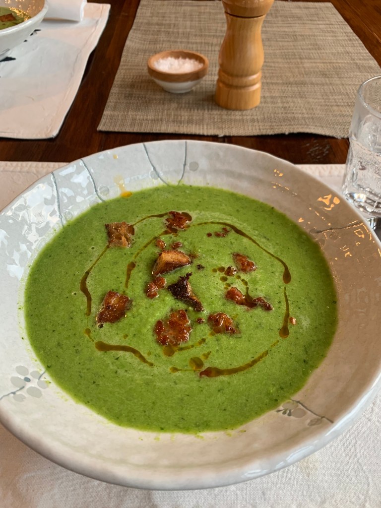 We started on soup Monday with pea and sherry soup with chorizo oil, p119. I love pea soup and this did not disappoint. Peas, chorizo, sherry. Can’t go wrong. We’d had a sourdough loaf that wasn’t perfect but was perfect for croutons, so everything came together to make this a delicious meal. This may be my favourite meal from the magazine, I finished the soup with a drizzle of Olivo chilli infused olive oil which made a great soup even better. I would have used the smoked paprika oil if I had had it. Perhaps I should get some.