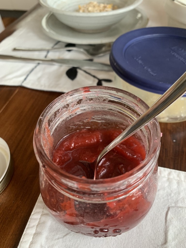 This jam is so popular in my house. We spoon it on cereal as a compote or on toast as a jam or stir it though creamy things as pudding.