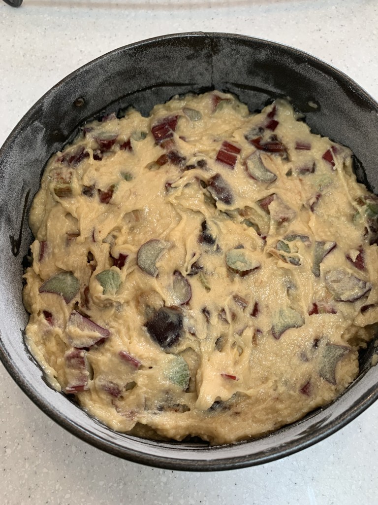 For afternoon tea, I recommend a rhubarb and date cake we acquired many years ago from the Marsden School cookbook, where it was contributed by the principal. This cake is always very popular when I take it to functions and I am always asked for the recipe. Subsequently, I invariably get a panicked message from the recipient, accompanied by a photo, “I think something has gone wrong”! Rest assured it has not. It is a very odd batter which results in a divine cake every time.