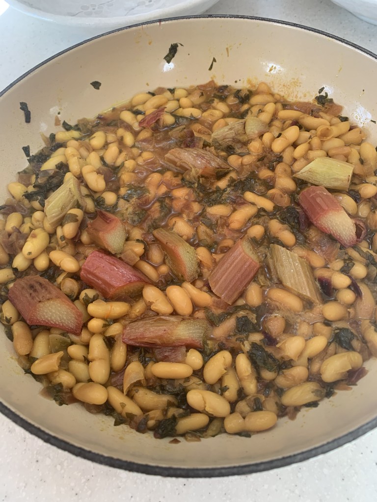 Now that you have put aside all prejudice and enjoyed rhubarb soup, you are ready to put rhubarb on the centre of your table. I’ve already suggested chard and rhubarb with sausage, which is wonderful served on polenta, and a chicken tagine with rhubarb in the earlier blog.