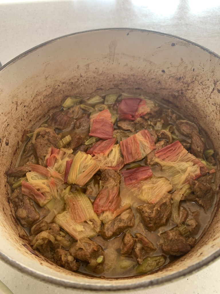 My favourite khoresht this rhubarb season was definitely the Middle Eastern spiced lamb and rhubarb from Dish #50, p102.